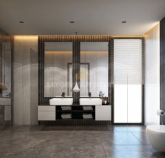 - Luxury villas with four bedrooms, open kitchen, and living area in a complex.